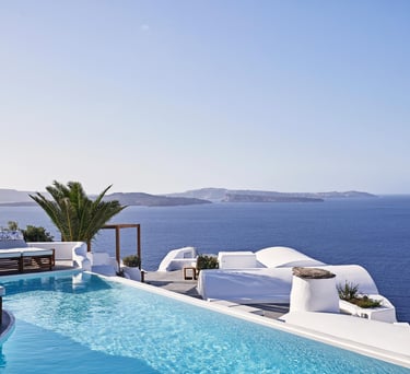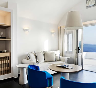Delicately furnished luxury accommodations take in the soft, sweet Aegean breeze and breathtaking views.