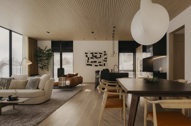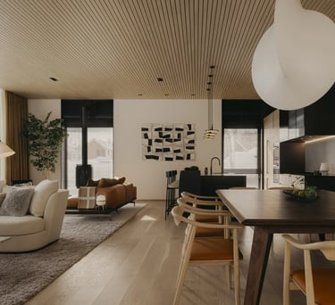 The 370m2 expansive interior boasts beautifully-textured natural tones and the layering of modern details that evoke a sense of place, harmony, and comfort. Features a beautiful and expansive Japanese onsen-style bath that blends traditional materials and craftsmanship with contemporary sensibilities.